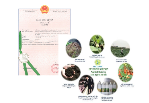 Bản quyền công nghệ và vòng tròn sinh học hoàn nguyên, hoàn trả dinh dưỡng cho đất trong sản xuất nông nghiệp bằng phương pháp hữu cơ vi sinh của Liên hiệp HTX Nông nghiệp Hữu cơ và Dược liệu Việt Nam.